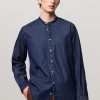 Long-sleeved t-shirt, guru collar, partial opening with three mother-of-pearl buttons, regular fit, made in lightweight organic cotton jersey. Made in Italy.