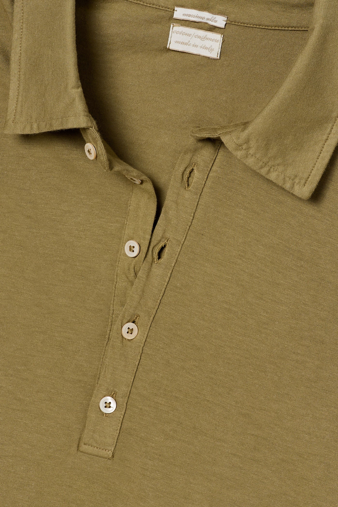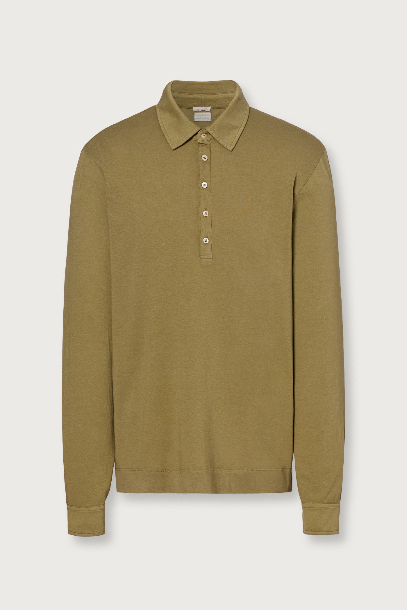Regular-fit 5-button long-sleeve polo shirt in lightweight cotton cashmere jersey with a chest pocket and shirt cuffs. Made in Italy.