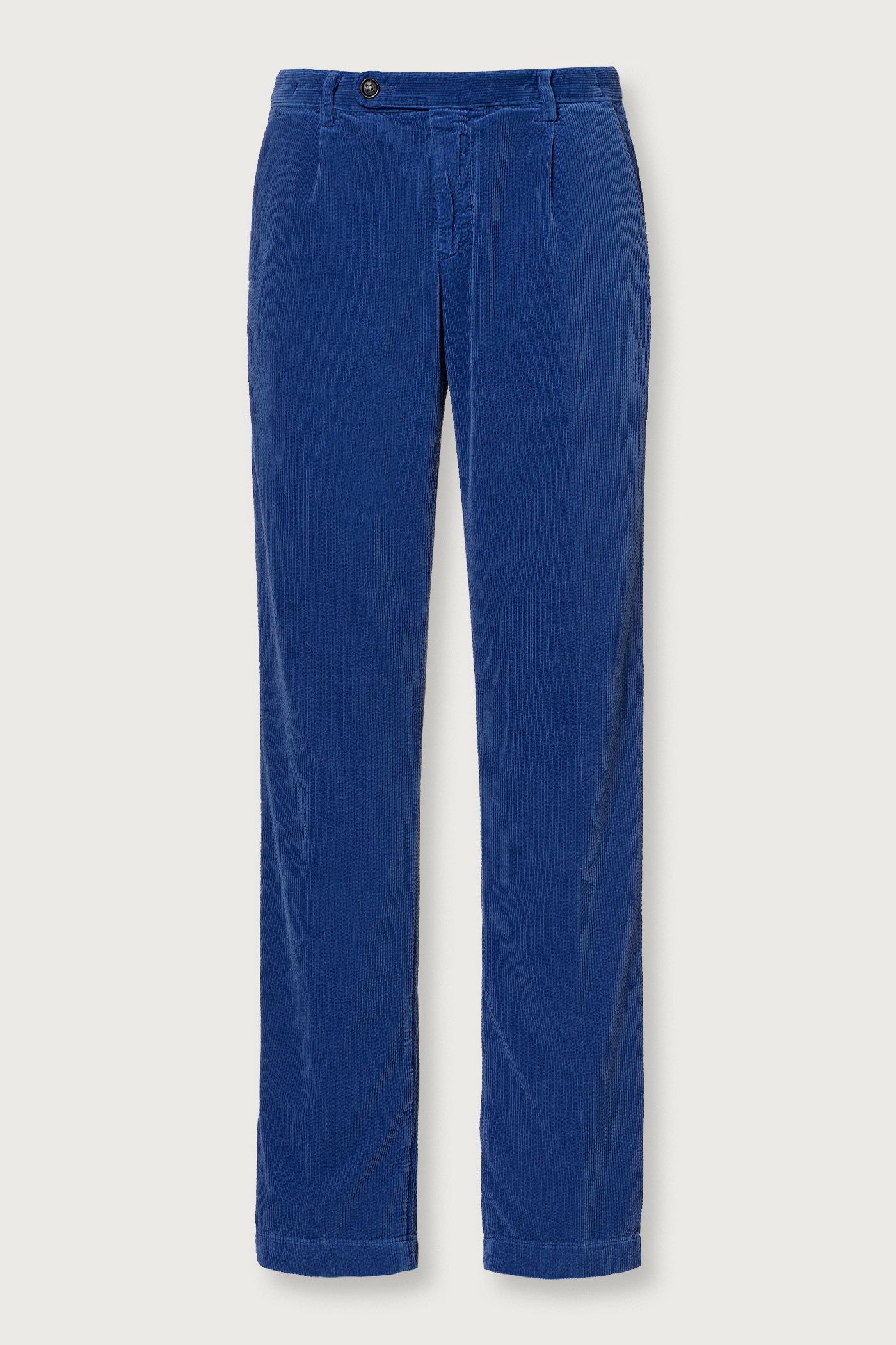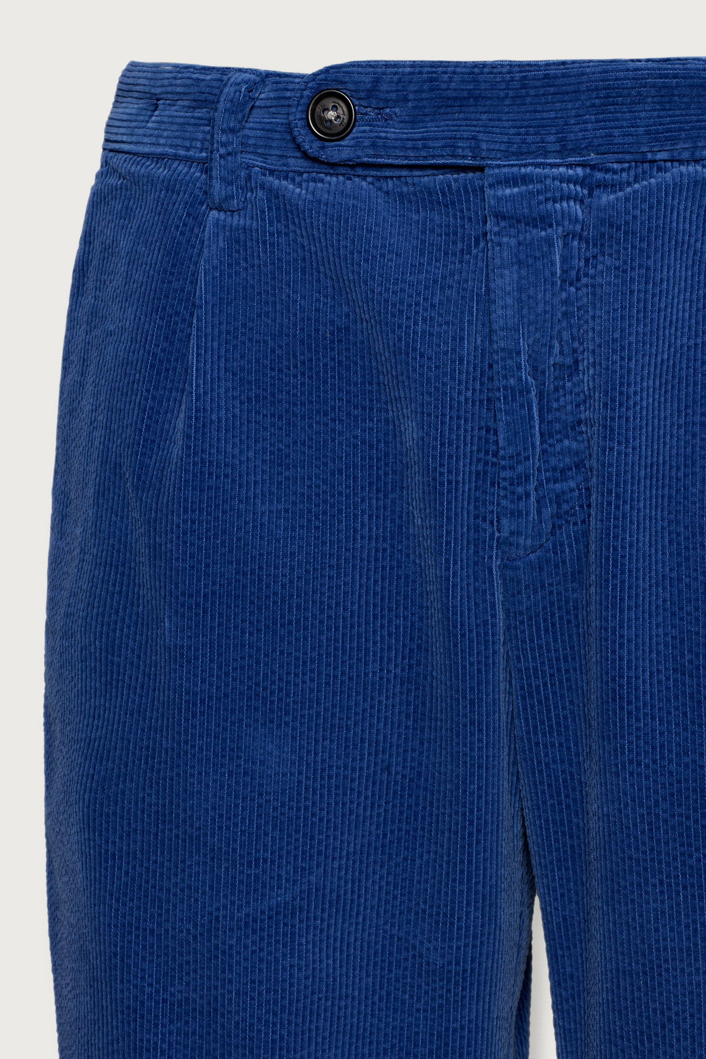 Loose fit trousers in cotton corduroy featuring stitched darts, slant pockets, a tab fastening on the front, dark horn buttons, a concealed zip, flap pockets on the back and belt loops on the waistband. Made in Italy.