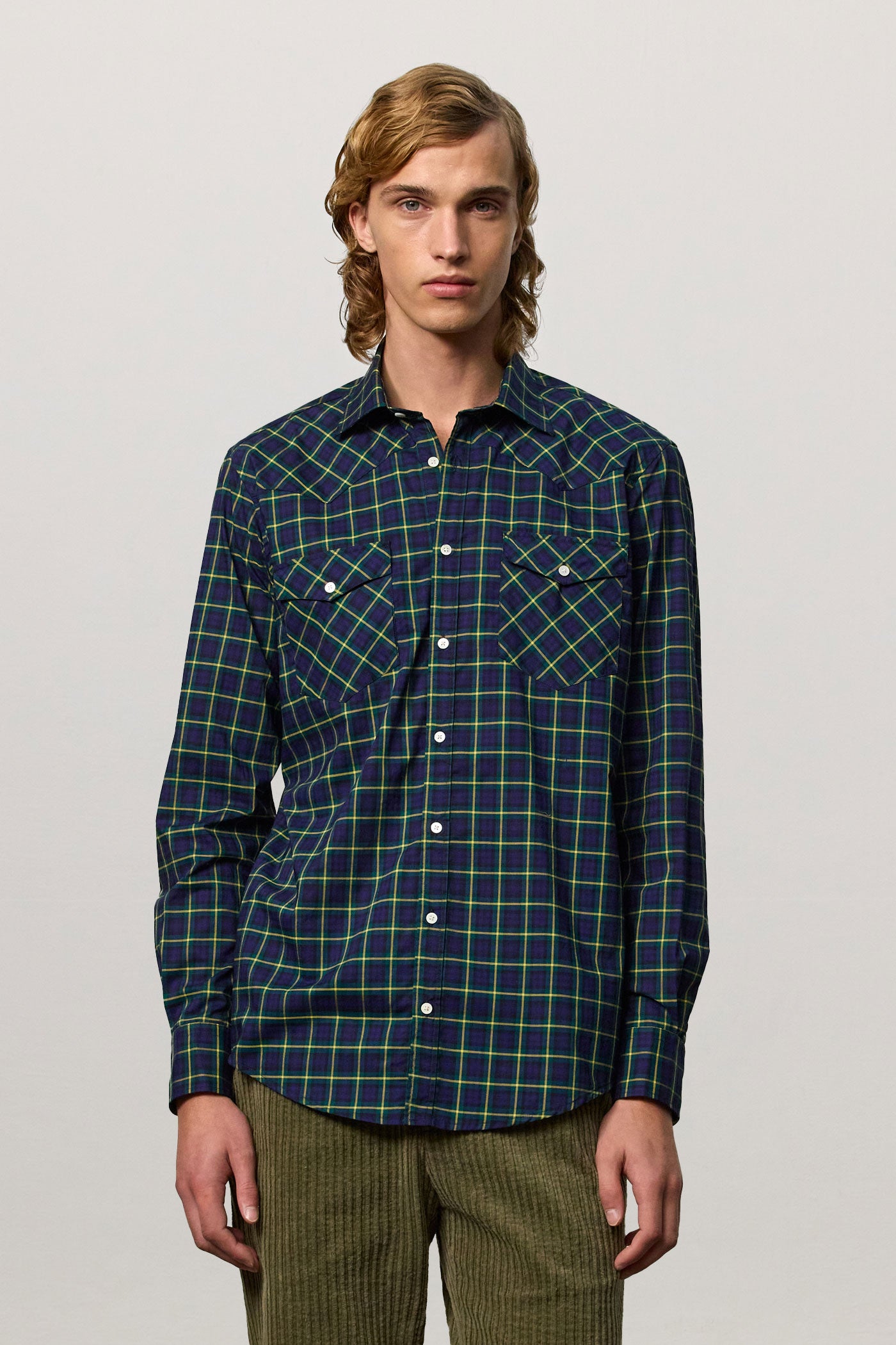 Shirt with classic collar, buttoned chest pockets, pointed yoke, and a small embroidered shield at the front for attaching numbers. Made of pure cotton. Made in Italy.