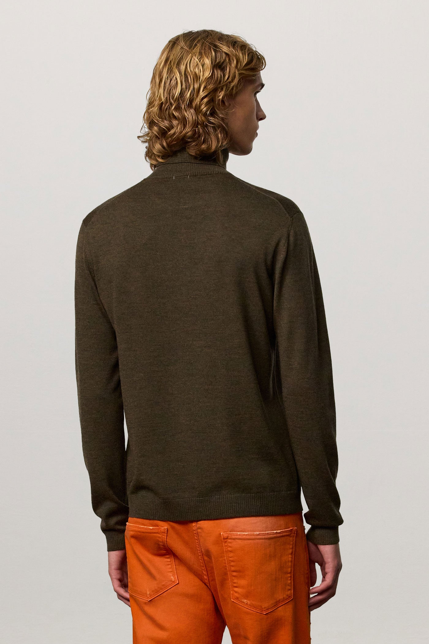 Regular fit turtleneck in pure extrafine virgin wool, dropped shoulders and ribbed borders. Made in Italy.