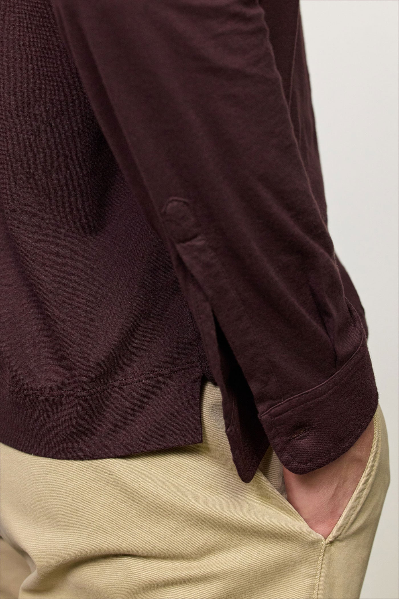 Long-sleeved polo shirt with a regular fit and five-button closure, crafted from watercolor-effect cotton. Finished with a chest pocket and shirt-style cuffs. Made in Italy.