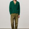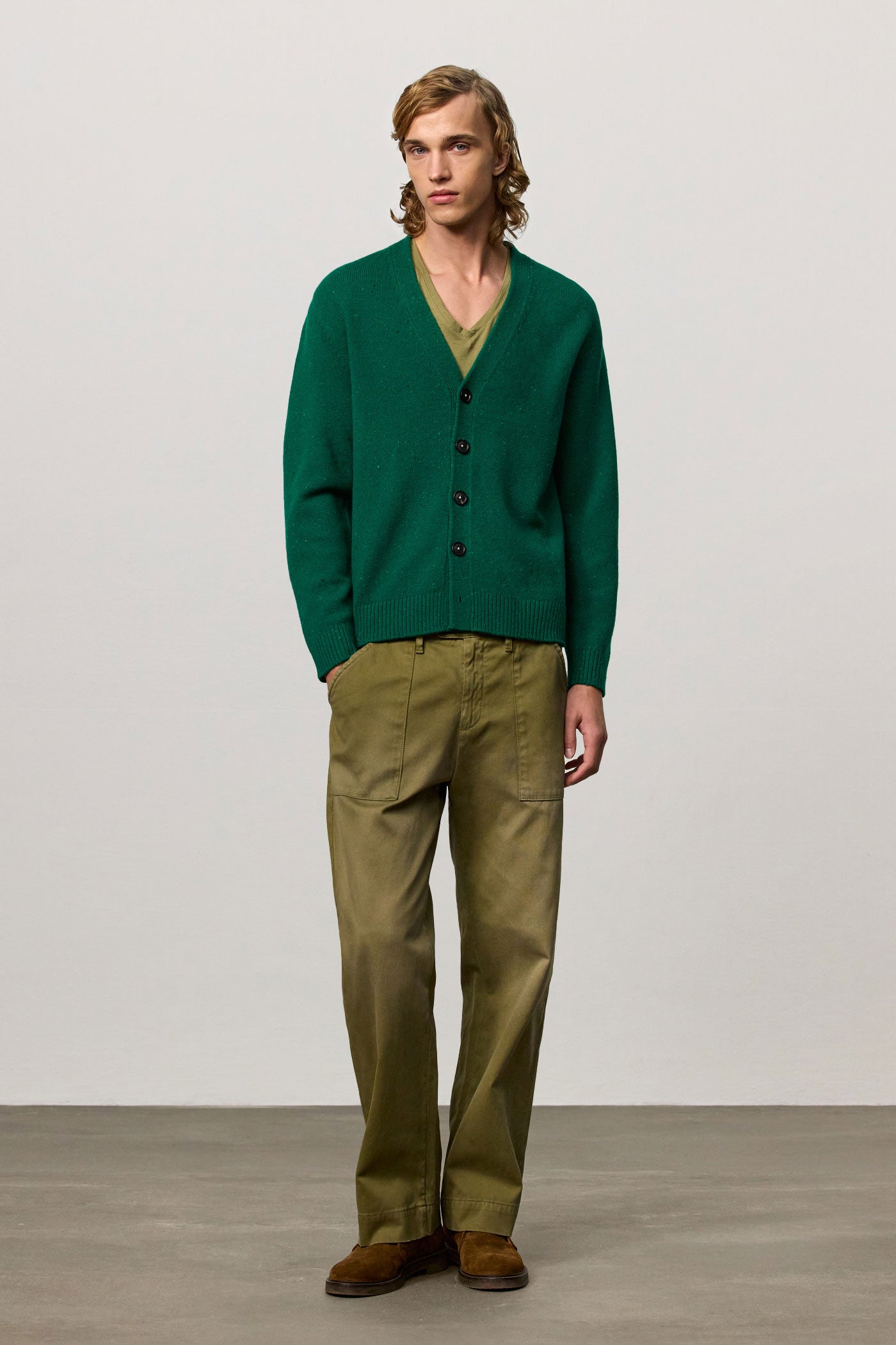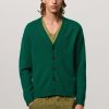Boxy fit cardigan with four horn buttons, high flat ribbed edges. Made from soft virgin Shetland wool. Made in Italy.