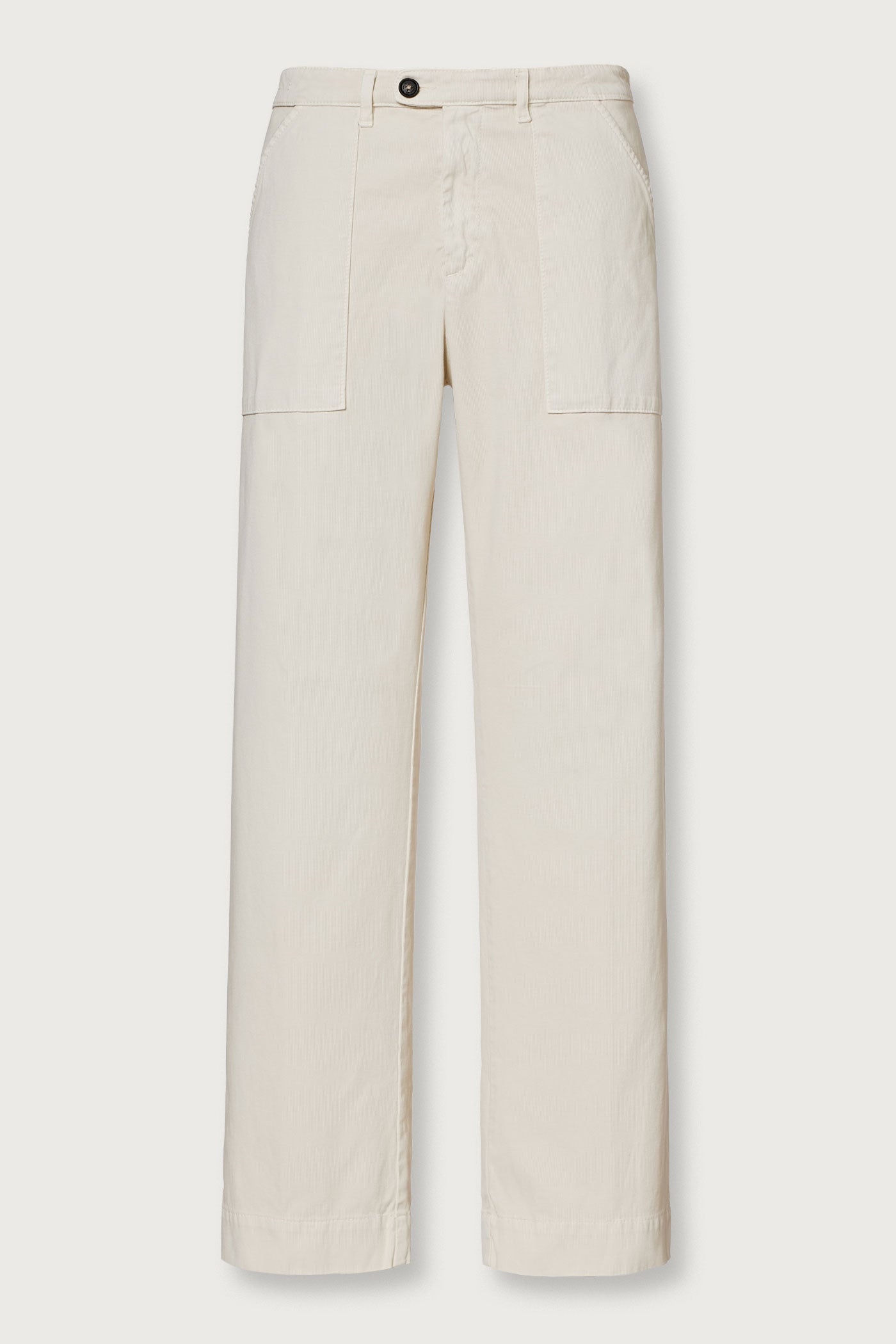 Wide-leg cargo trousers in stretch cotton jacquard, featuring a relaxed fit, patch pockets, and horn buttons. Made in Italy.