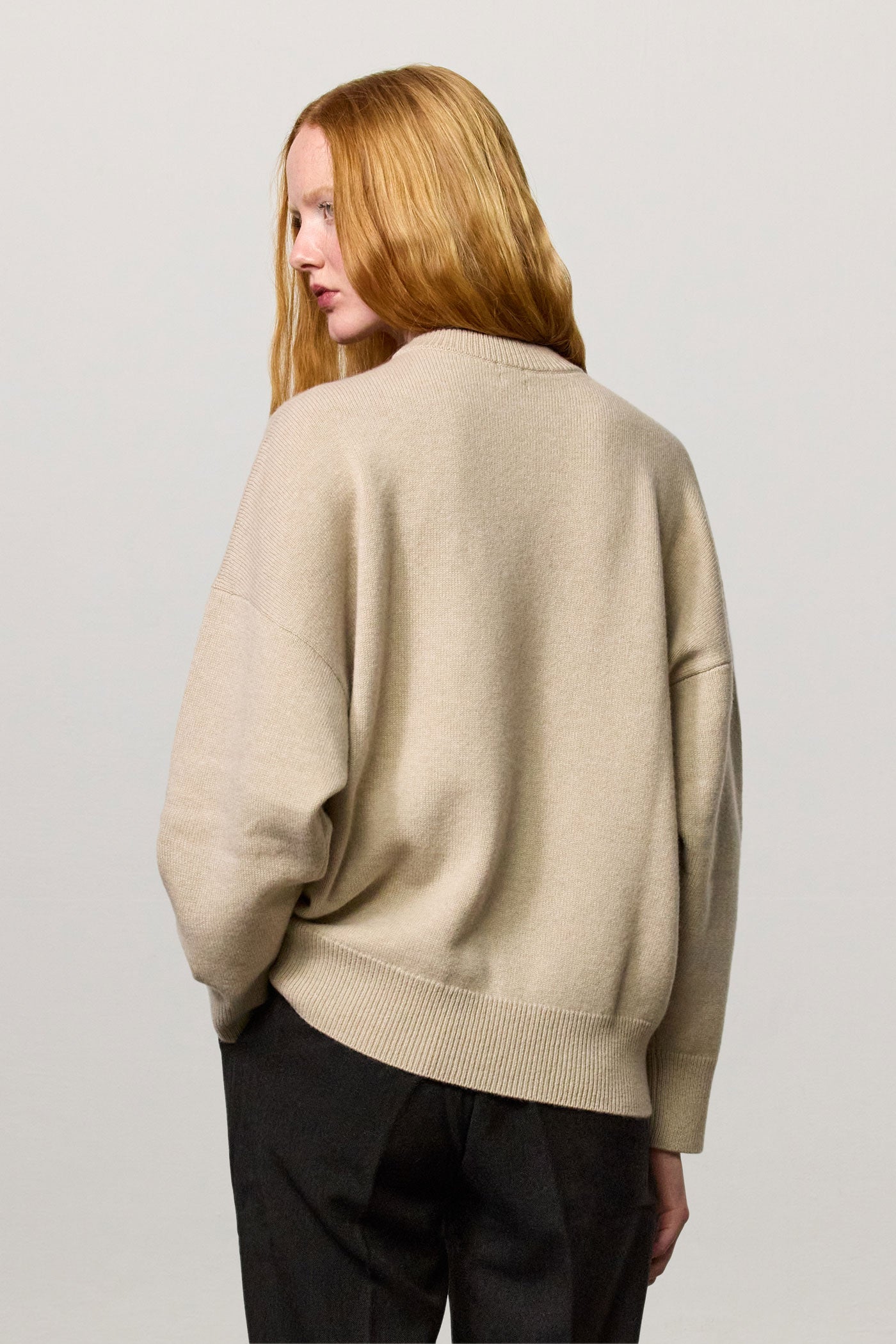 Crew-neck sweater in plain knit with an oversized fit, dropped shoulders and flat ribbed trims. Crafted from two-ply combed cashmere. Made in Italy.