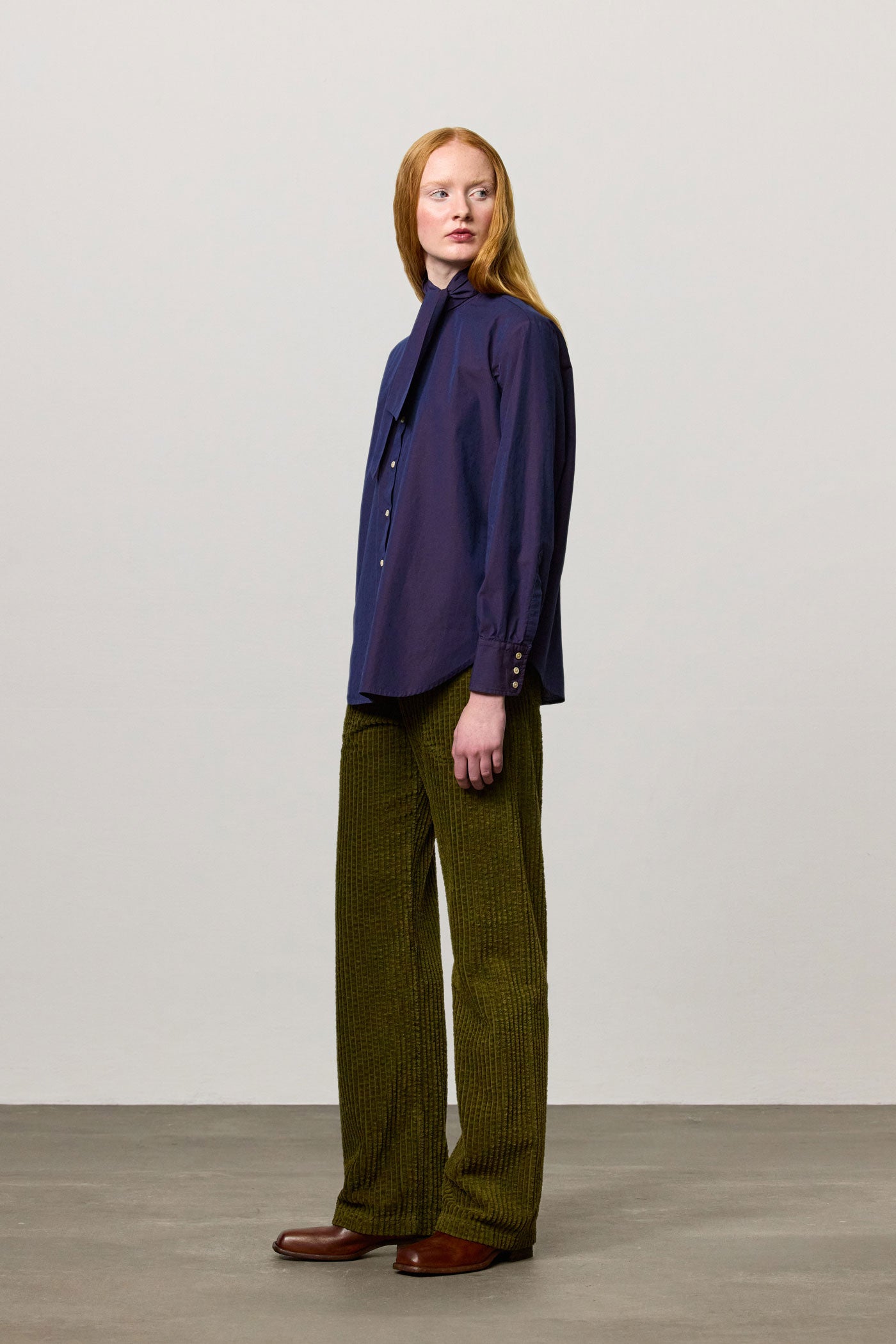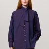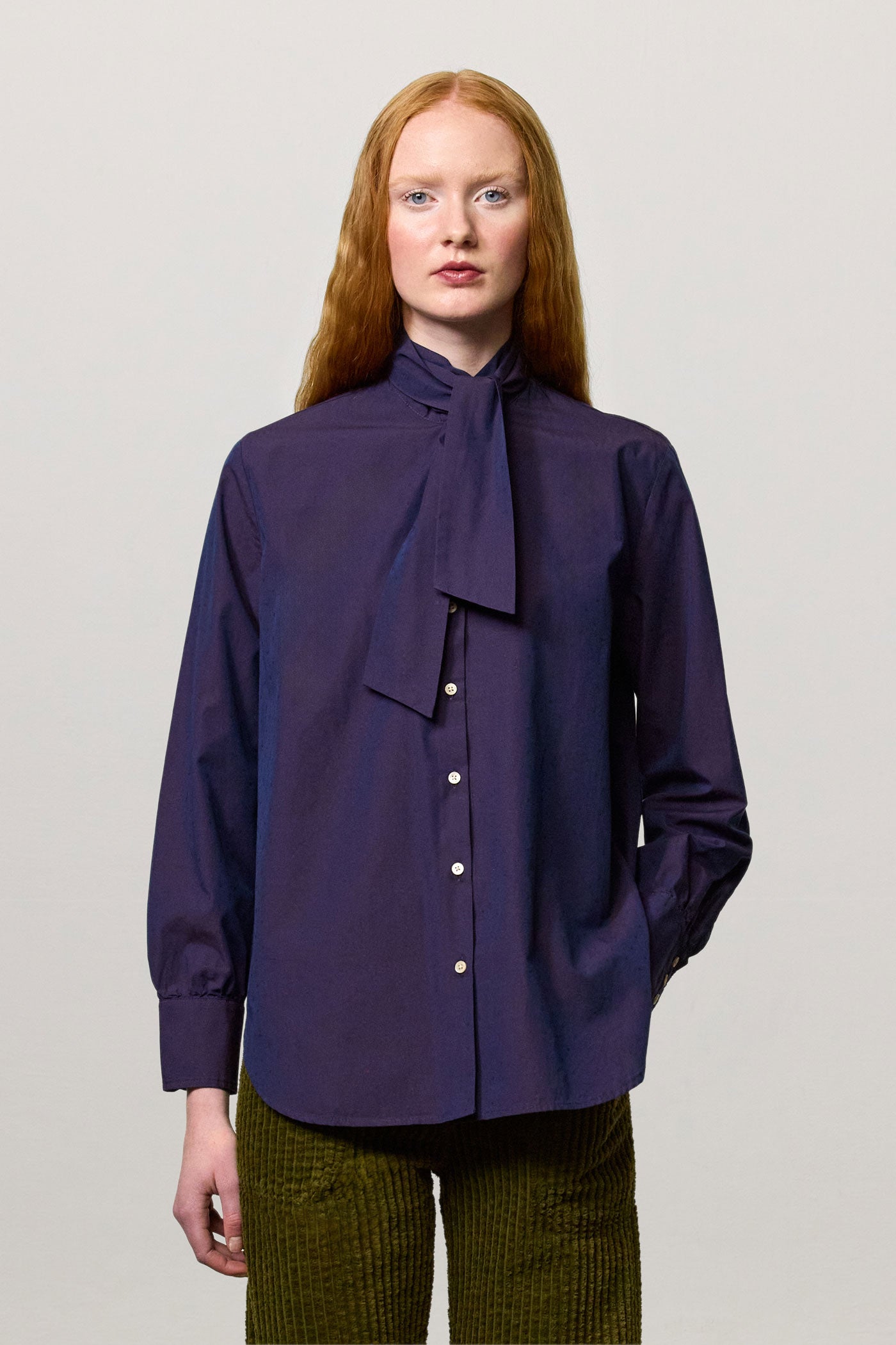 Blouse with bow tie, shirt-style cuffs and mother-of-pearl buttons. Crafted from fine yarn-dyed pure cotton jacquard. Made in Italy.