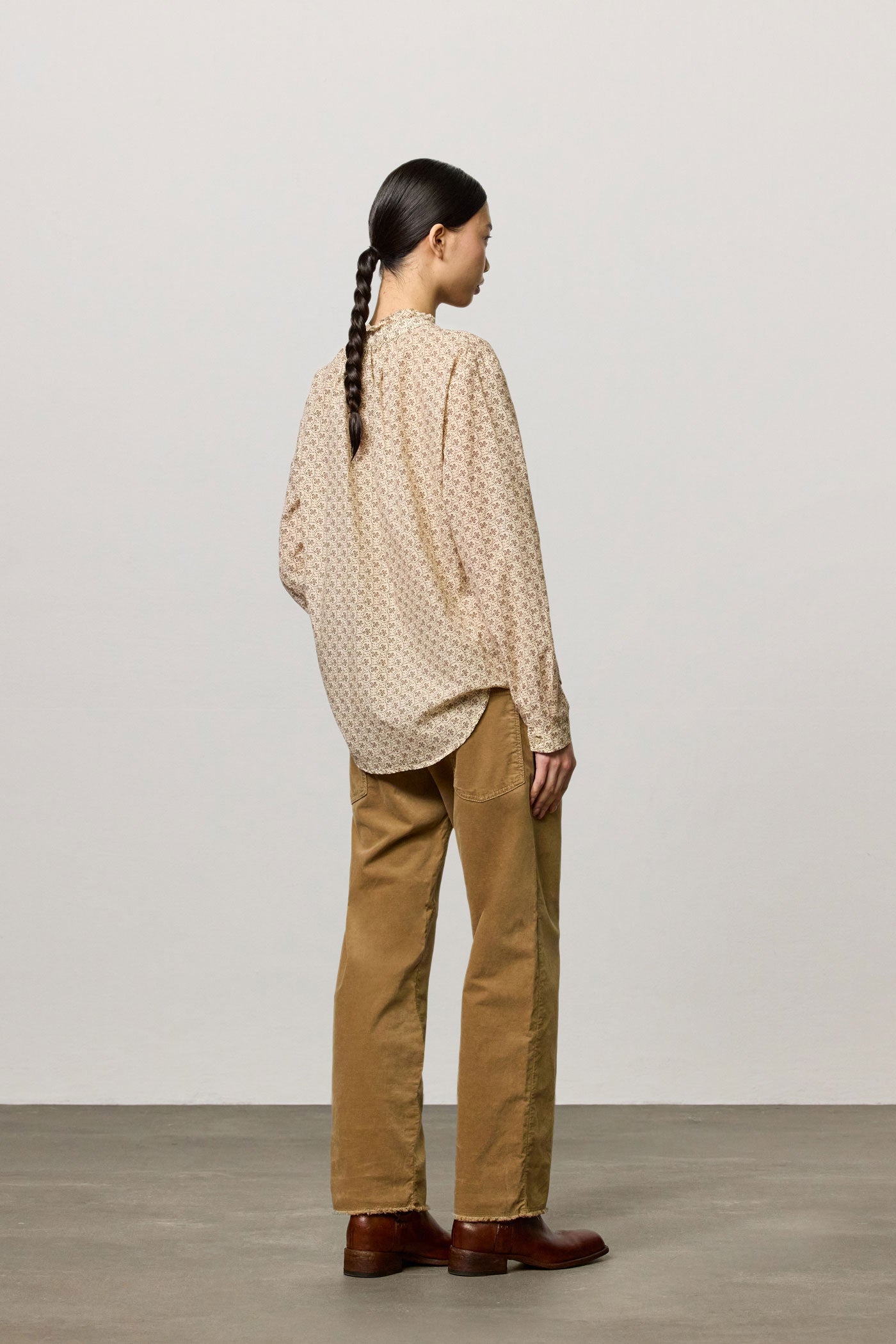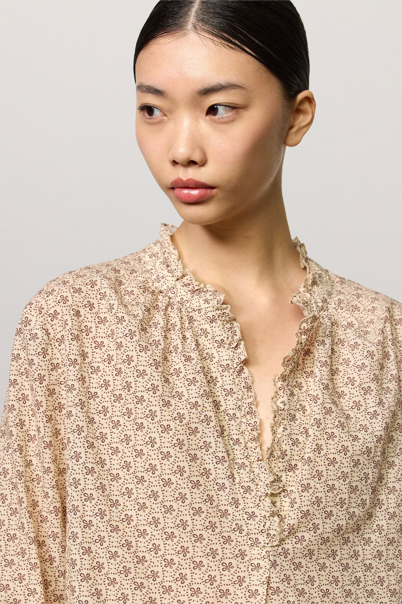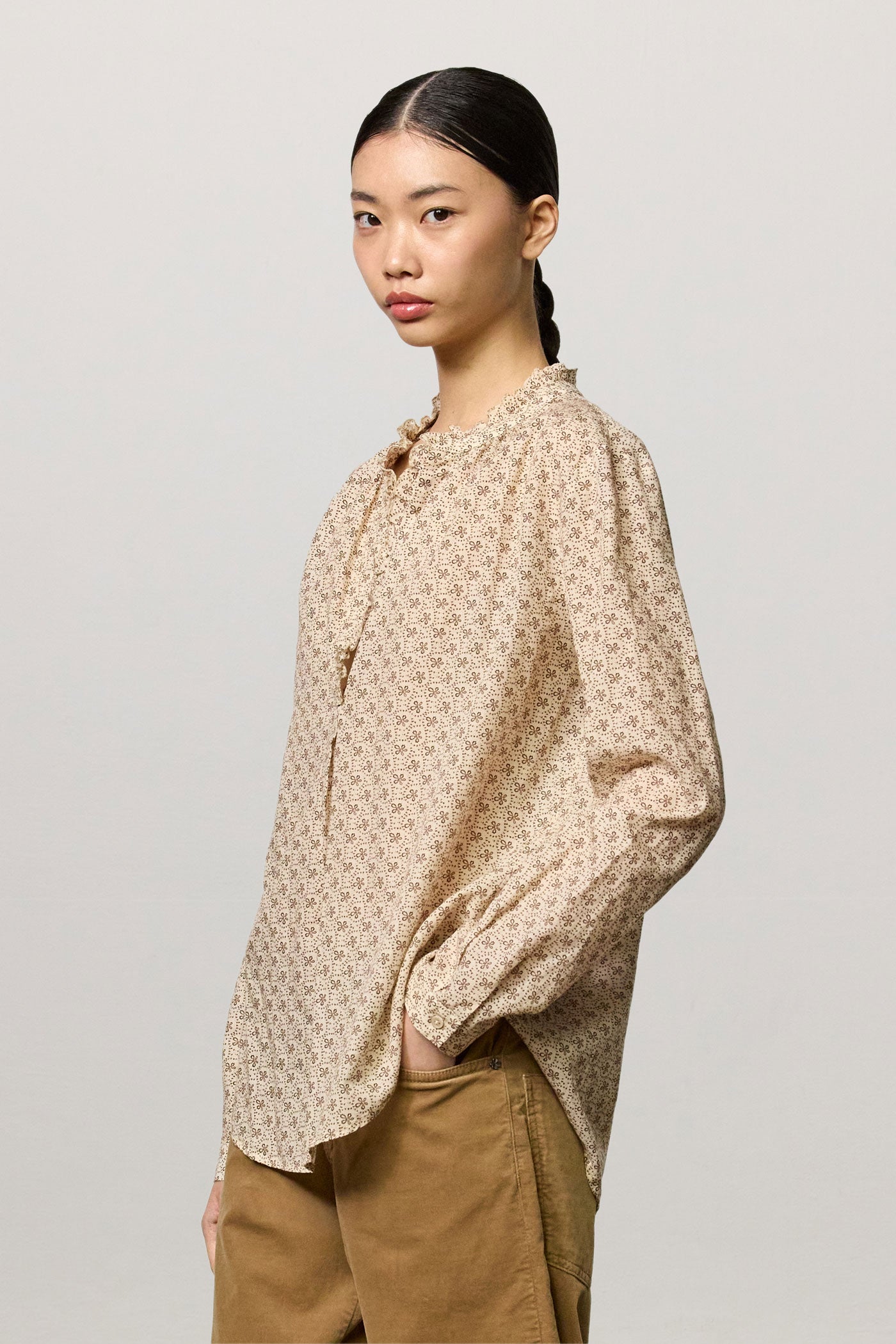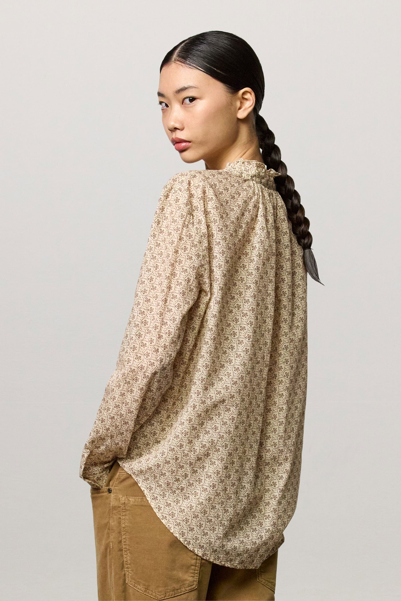 Blouse with gathered neckline and cuffs with mother-of-pearl buttons, crafted from cotton and cashmere in an exclusive print. Made in Italy.
