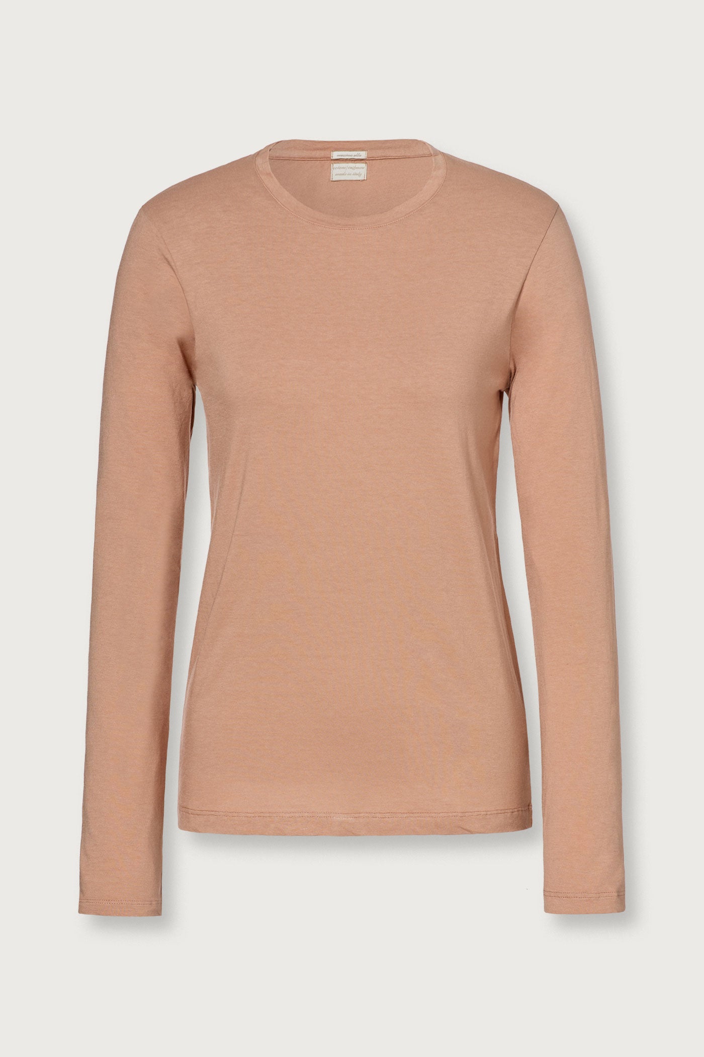 Crew-neck t-shirt, long sleeves, regular fit, made of lightweight cotton cashmere jersey. Made in Italy.