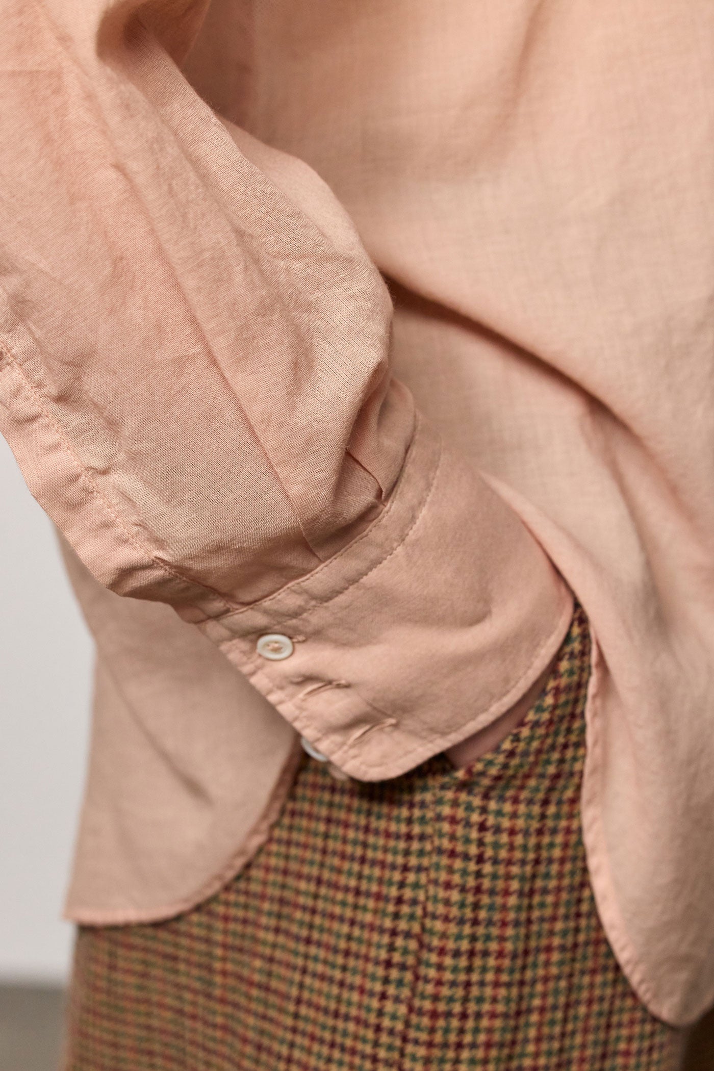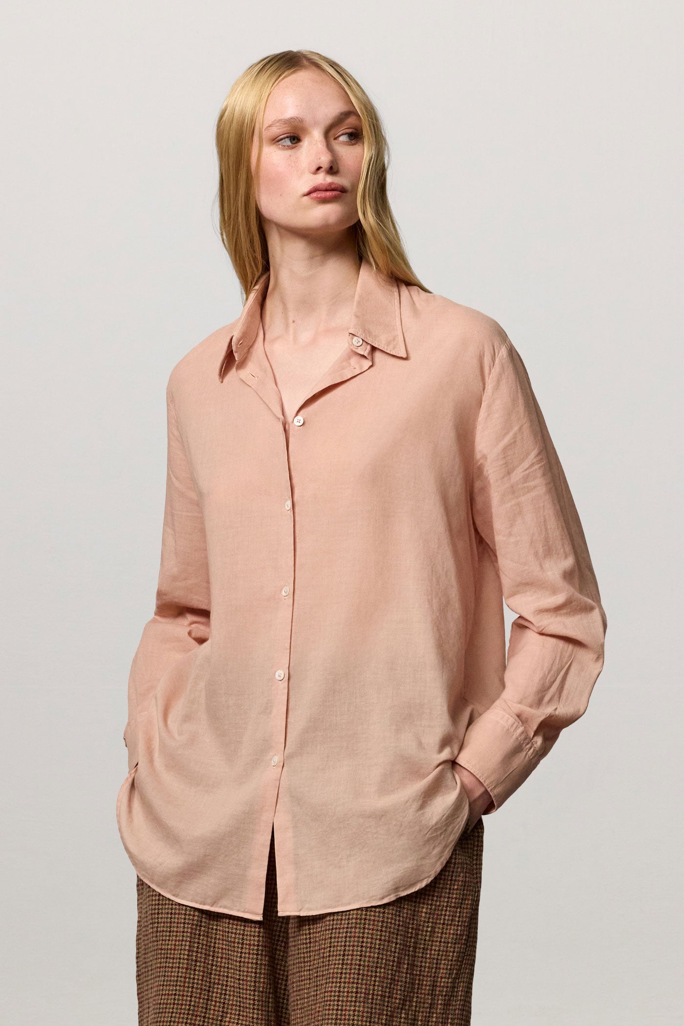 Relaxed-fit shirt with a pointed collar, back yoke, and no front placket. Made of cotton cashmere. Made in Italy.