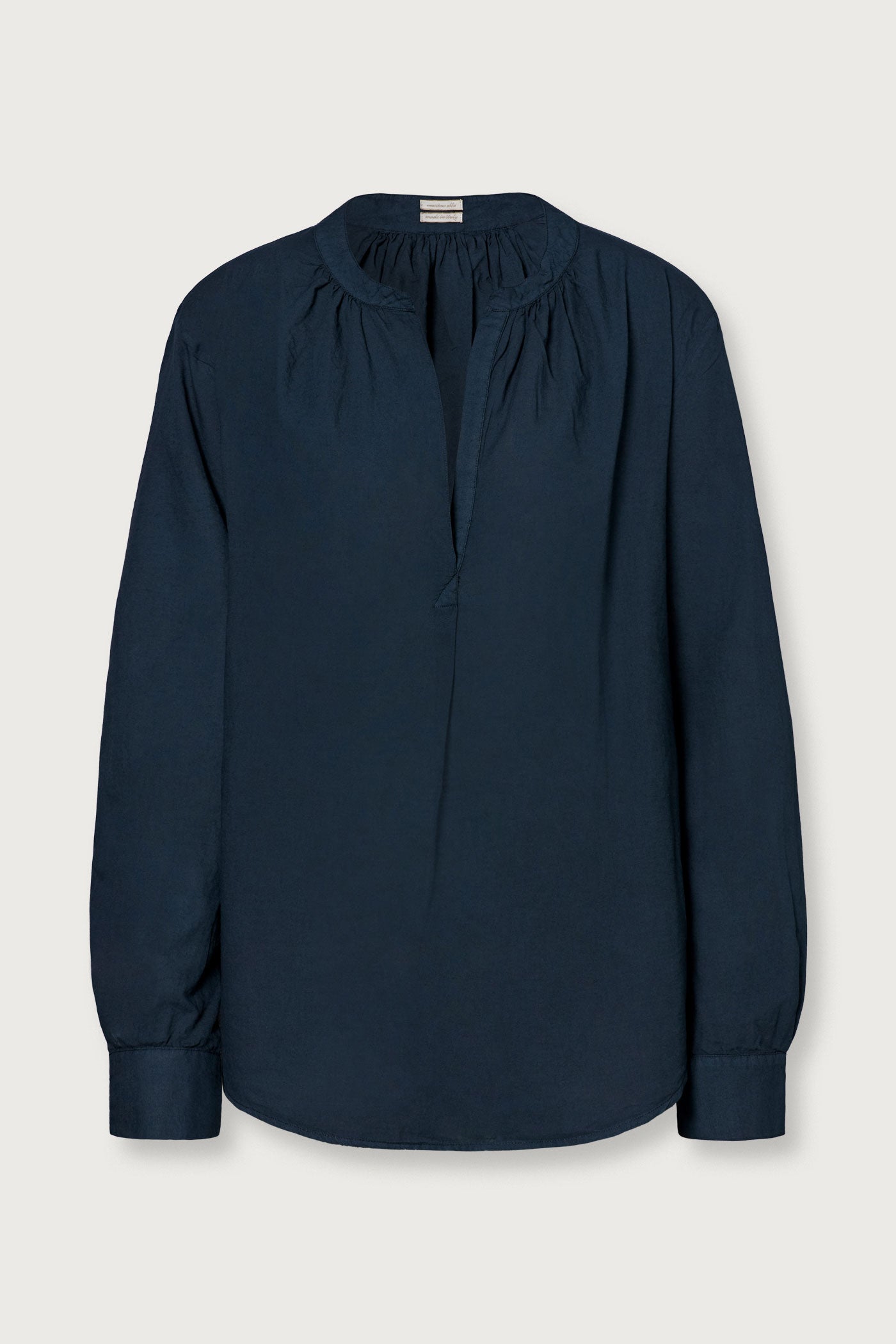 Blouse with korean collar, deep neckline, high cuffs, made of cotton cashmere voile. Made in Italy.