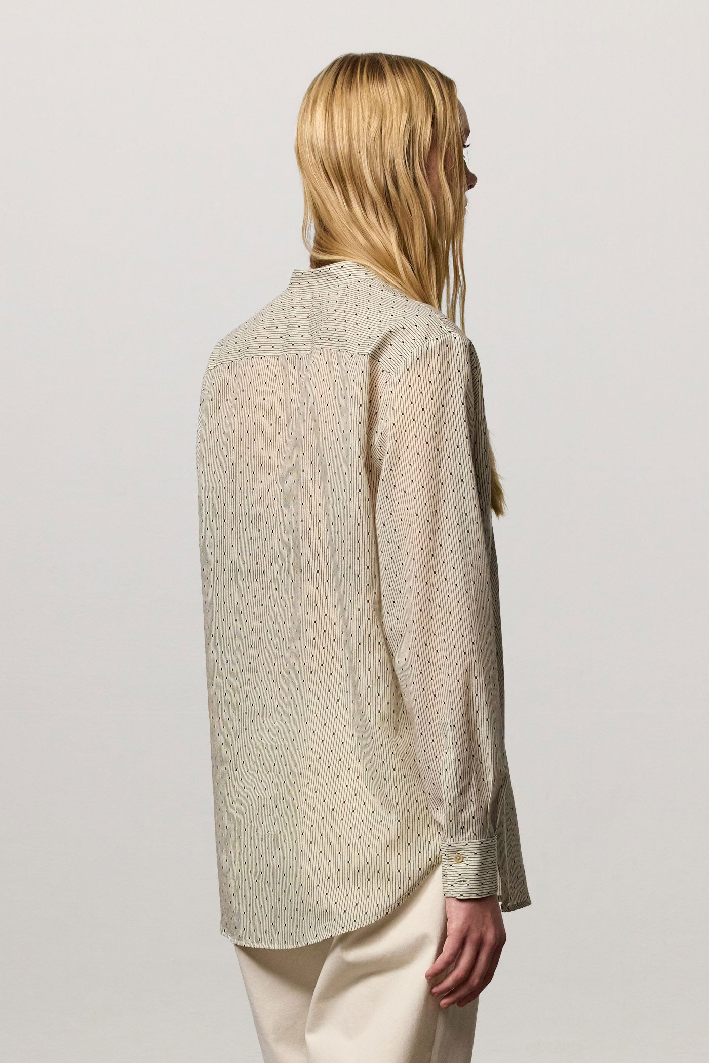 Comfort fit shirt mandarin collar, a pointed yoke and a plastron on the front. Made in exclusive print cotton cashmere. Made in Italy.
