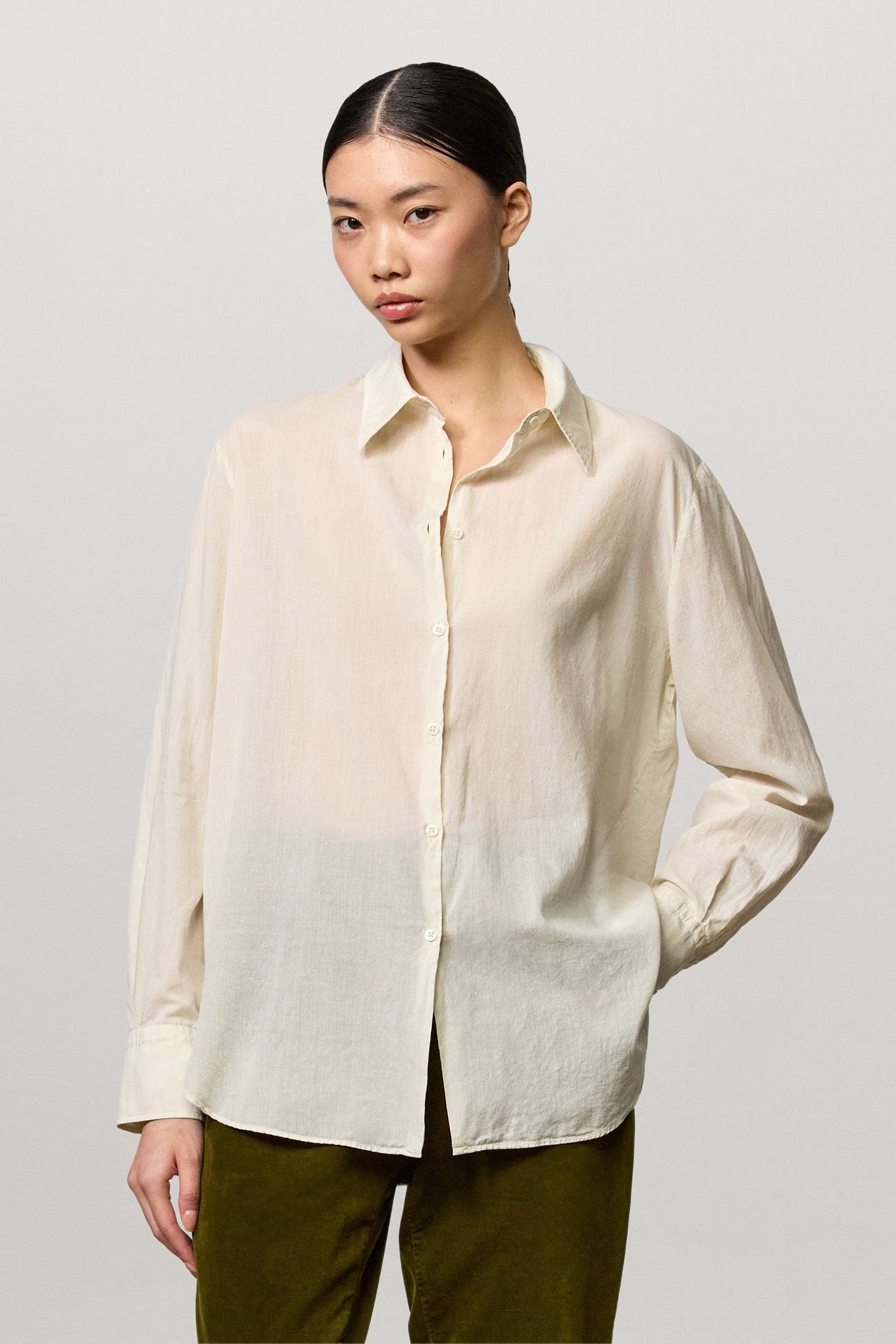 Relaxed-fit shirt with pointed collar, back yoke and no front placket. Crafted from cotton and cashmere with a watercolor effect. Made in Italy.