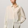 Relaxed-fit shirt with pointed collar, back yoke and no front placket. Crafted from cotton and cashmere with a watercolor effect. Made in Italy.