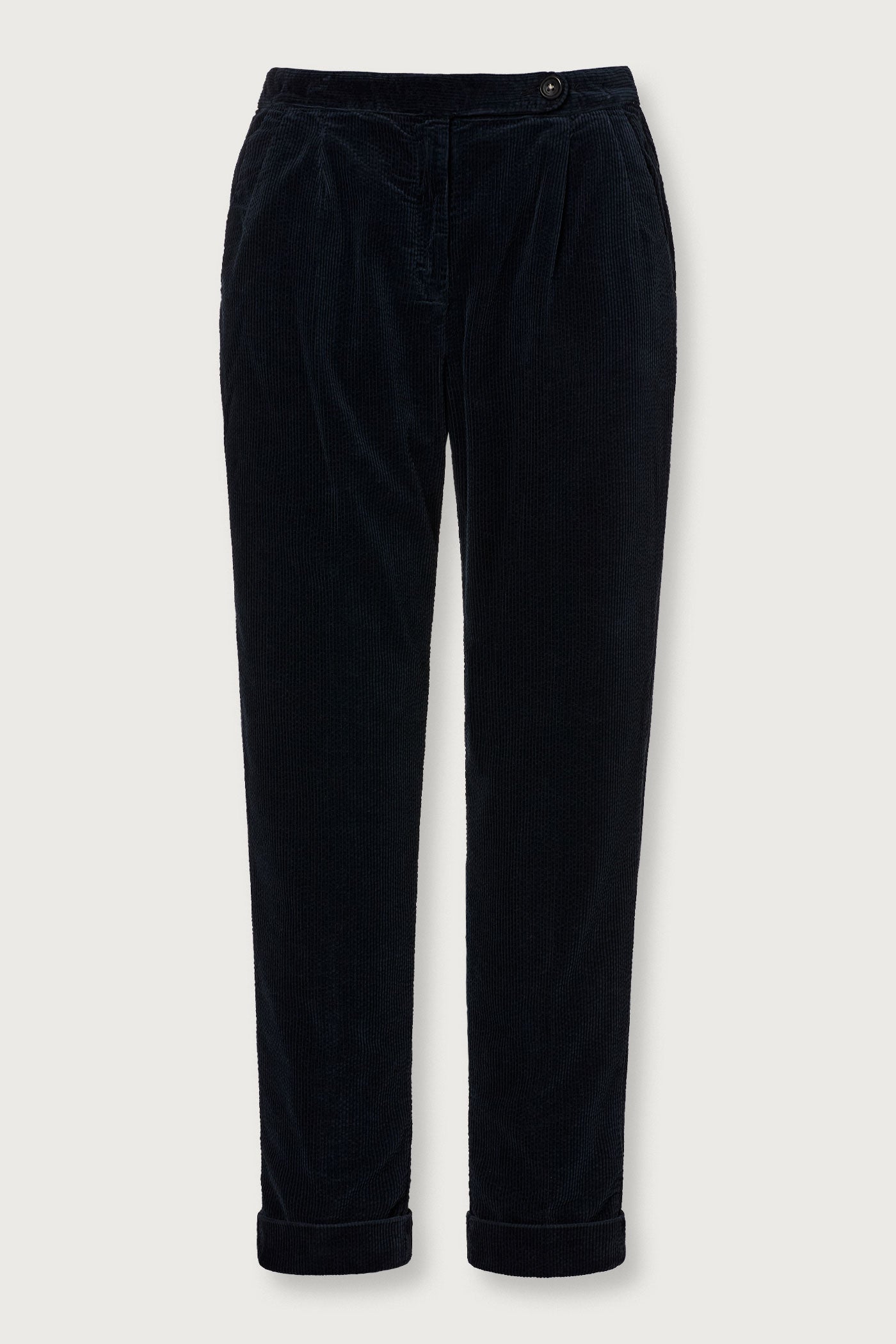 Regular fit trousers with a tab-button closure and zip, featuring an elastic waistband at the back for added comfort. Designed with a single pleat and a rolled-up hem with a 17cm opening. Crafted from cotton corduroy. Made in Italy.