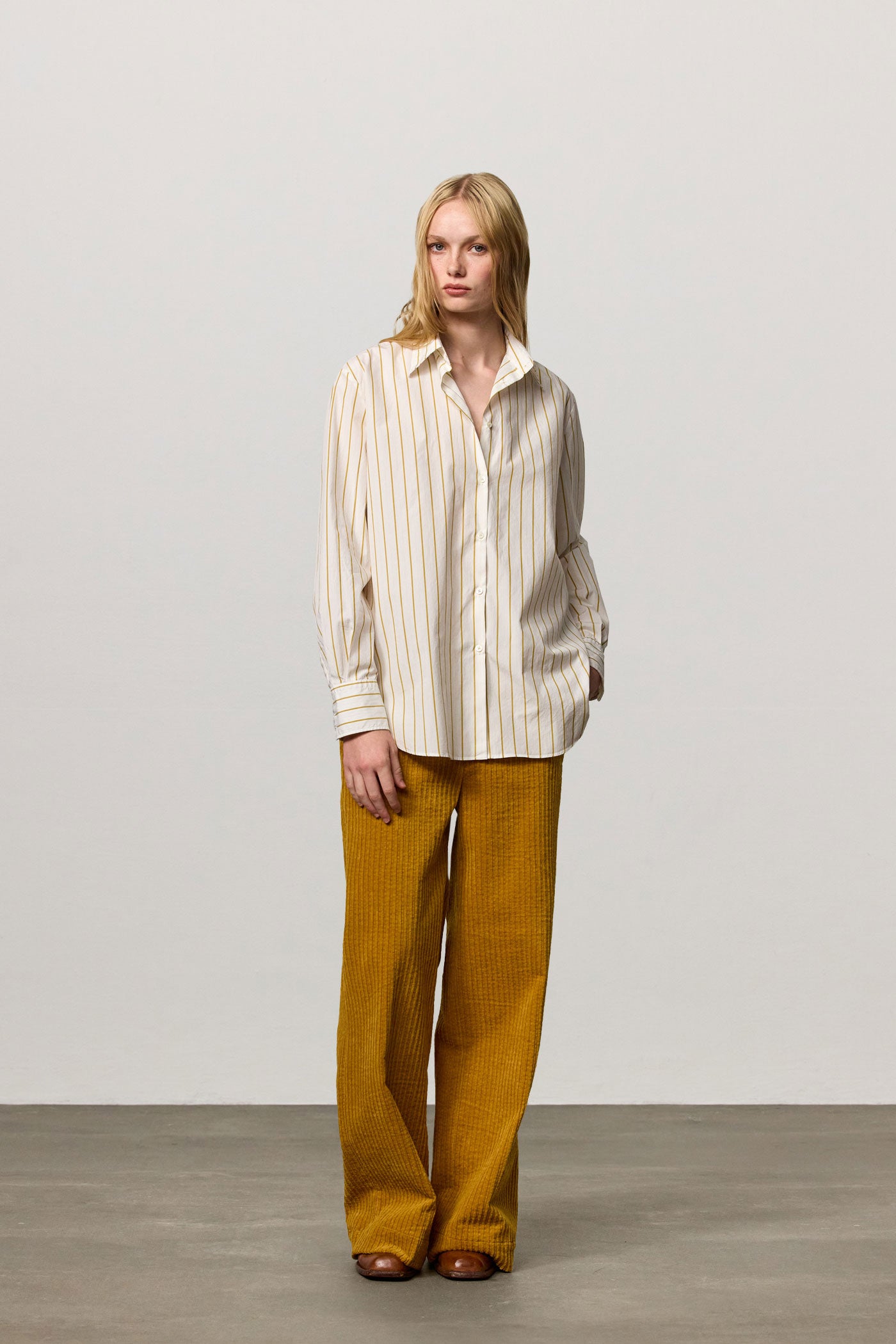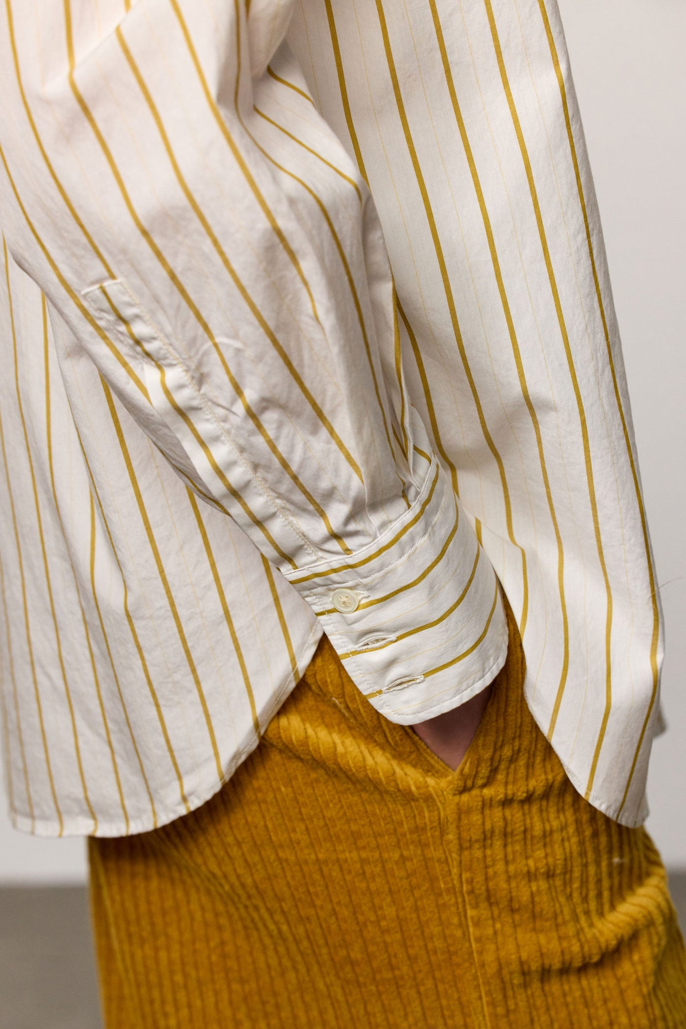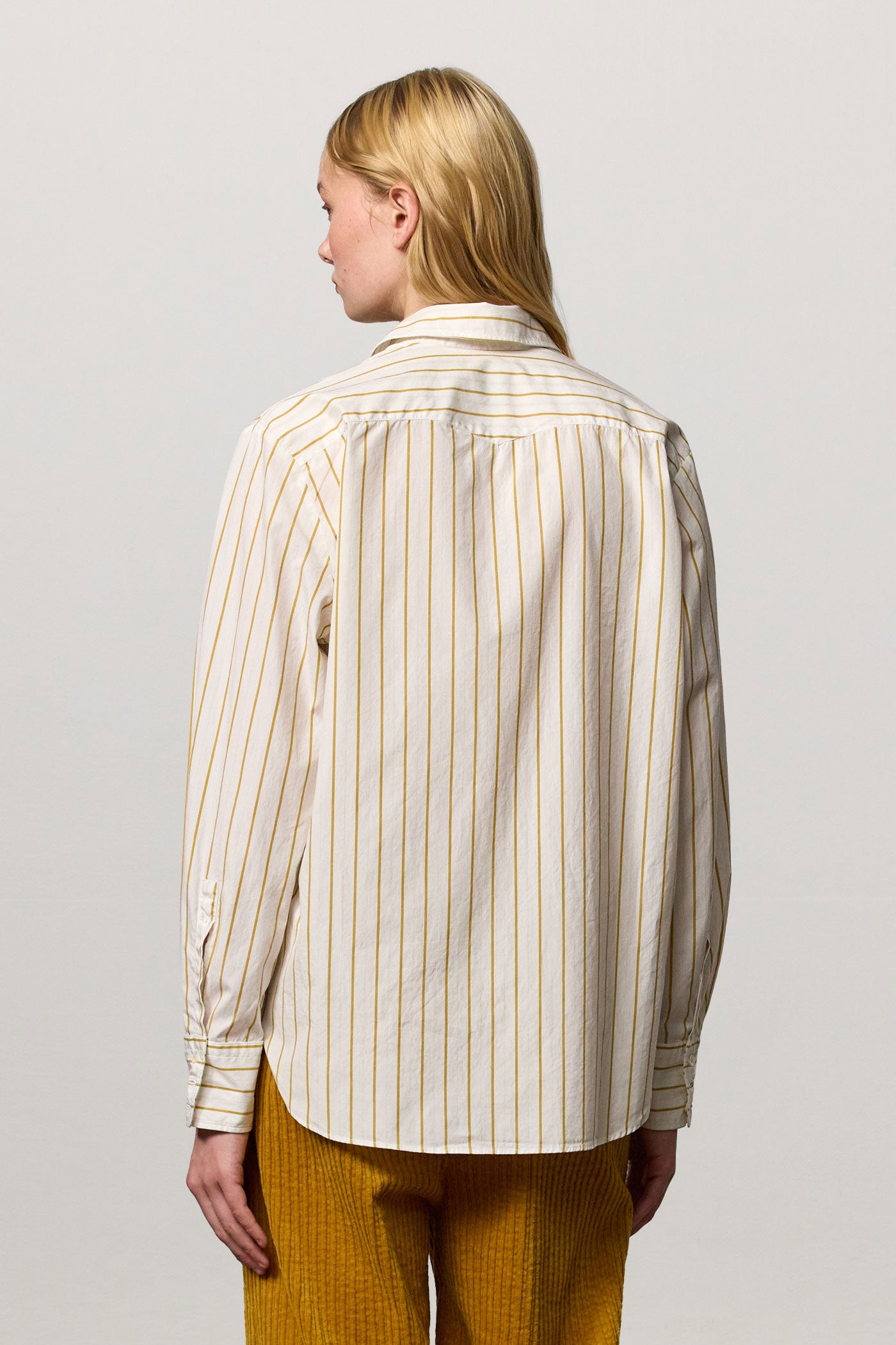 Relaxed-fit shirt with a pointed collar, back yoke, and no front placket. Made of cotton. Made in Italy.