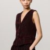 Vest with V-neckline, welt pockets, horn button closure, full lining and adjustable back strap with two buttons. Crafted from bi-colour cotton corduroy jacquard velvet. Made in Italy.