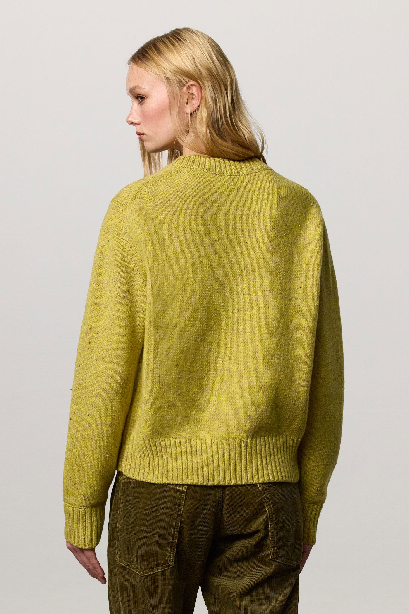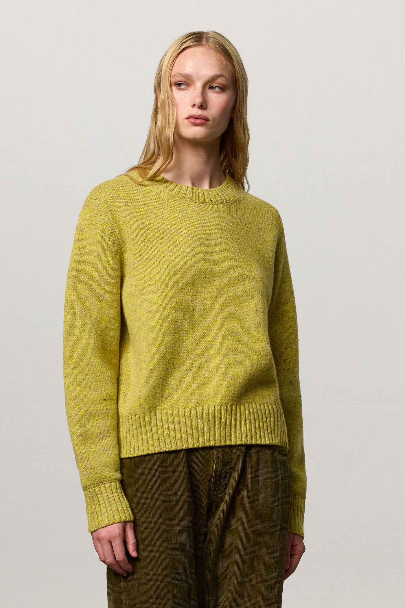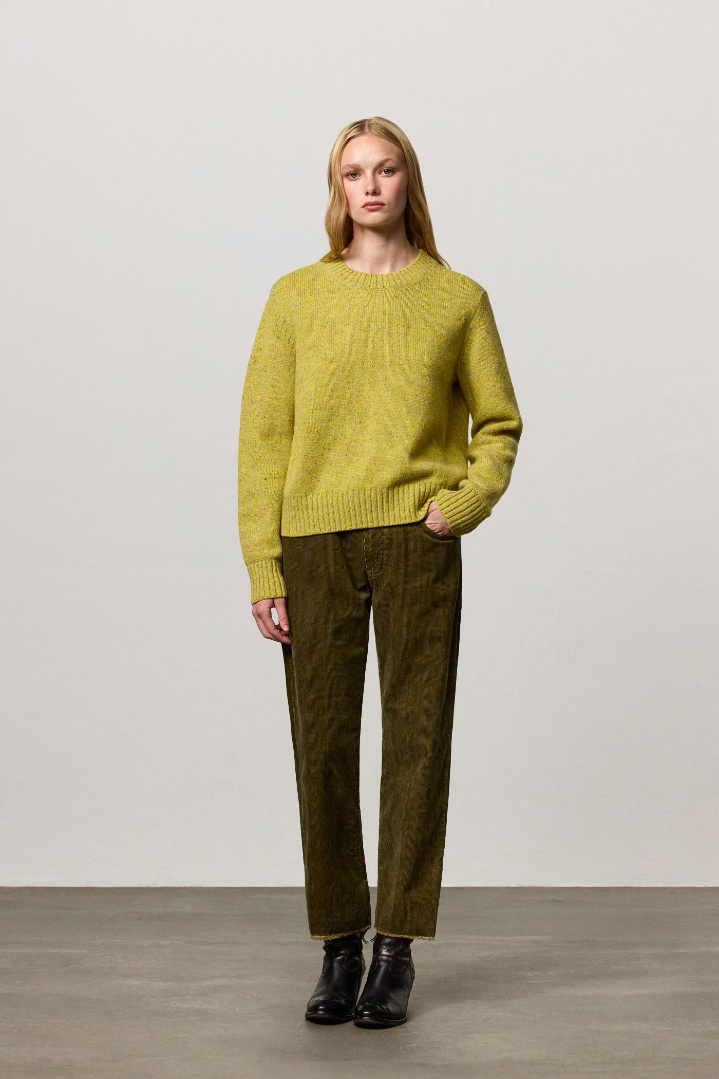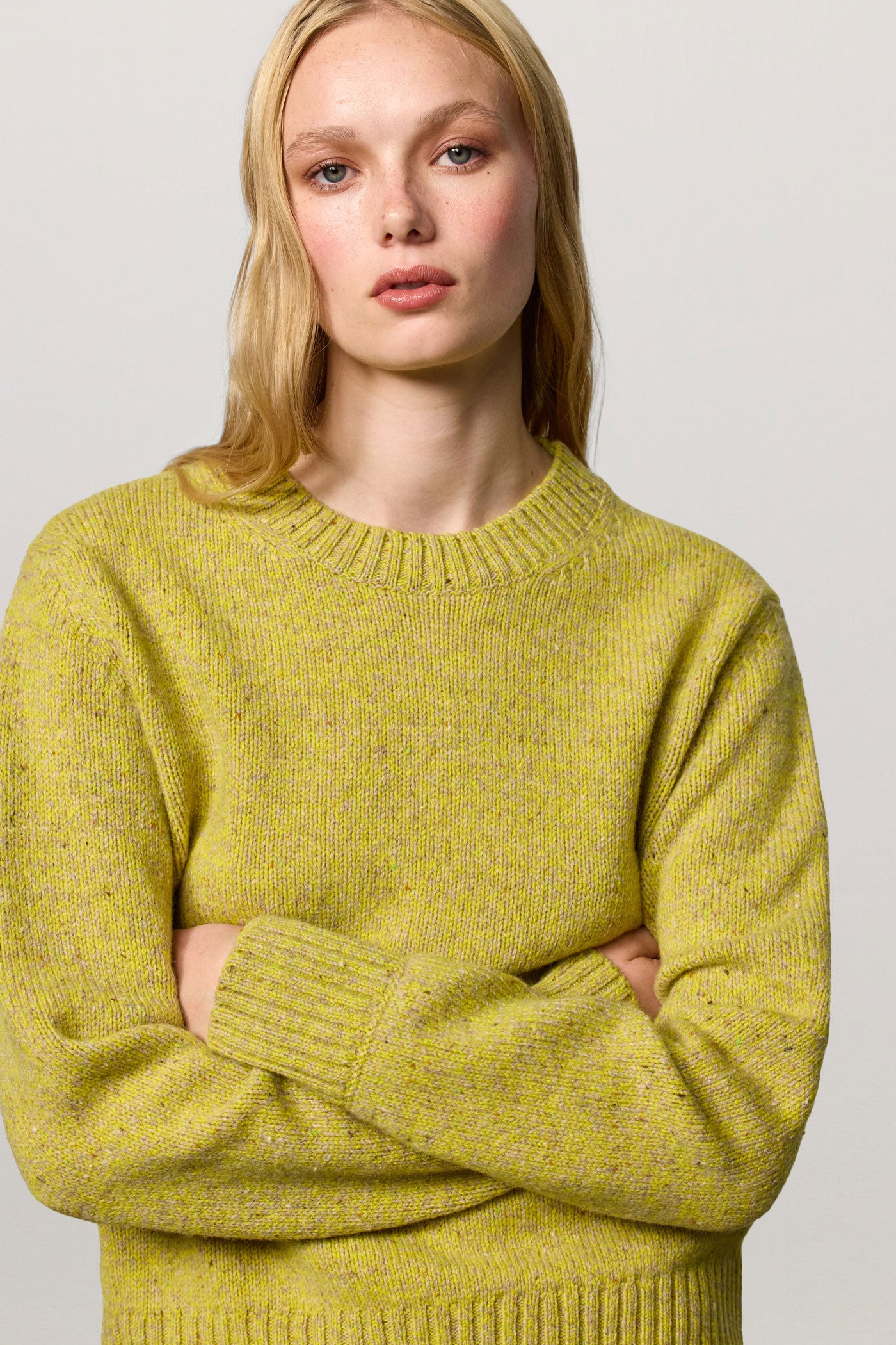 Regular fit crewneck-sweater, ribbed edges. Made in soft mouliné virgin wool. Made in Italy.