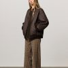 Reversible padded bomber jacket with a relaxed fit, featuring a front zip closure and raglan sleeves. It has two welt pockets on both sides. One side is crafted in compact virgin wool fabric, while the other side is quilted for extra warmth and style versatility. The jacket is finished with ribbed edges for a comfortable and snug fit. Made in Italy.