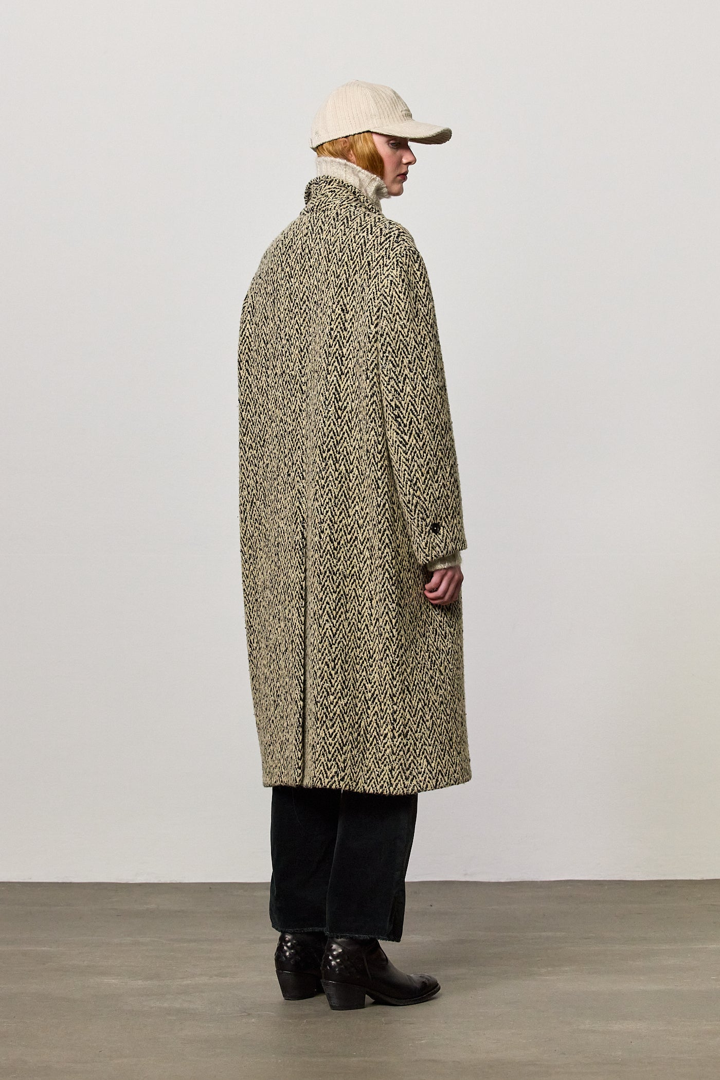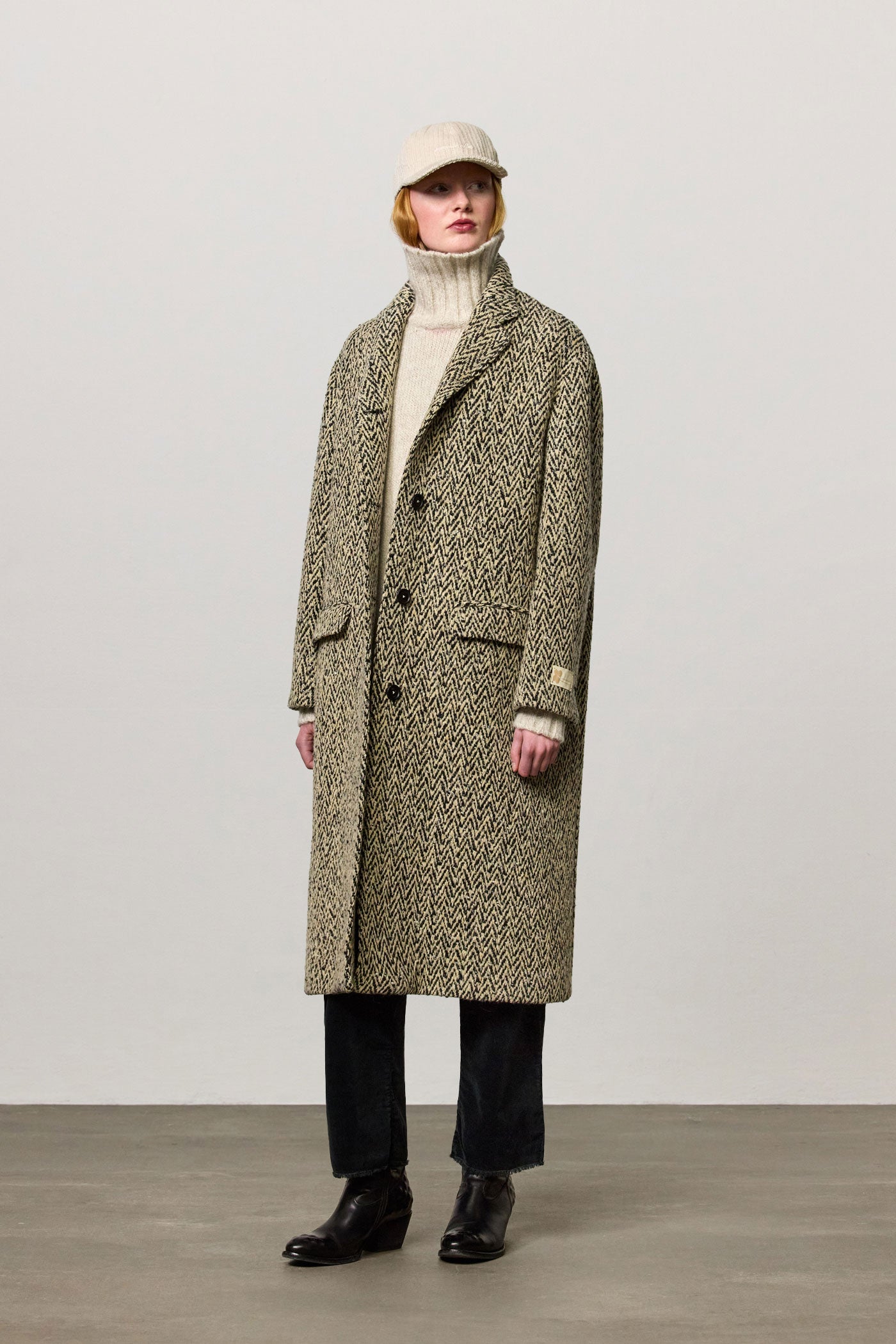 Single-breasted overcoat with dropped shoulders, welt pockets with flaps and four genuine horn buttons. Crafted from virgin wool. Made in Italy.