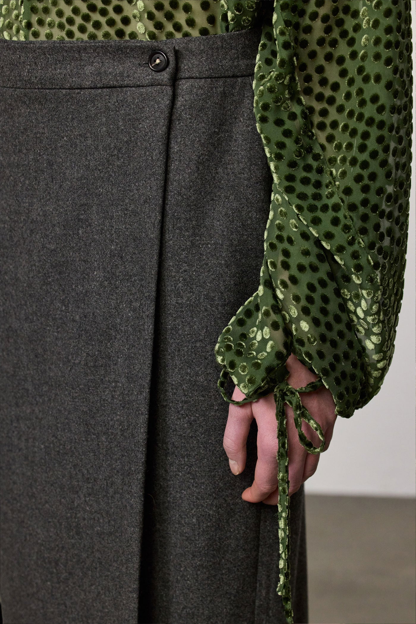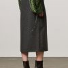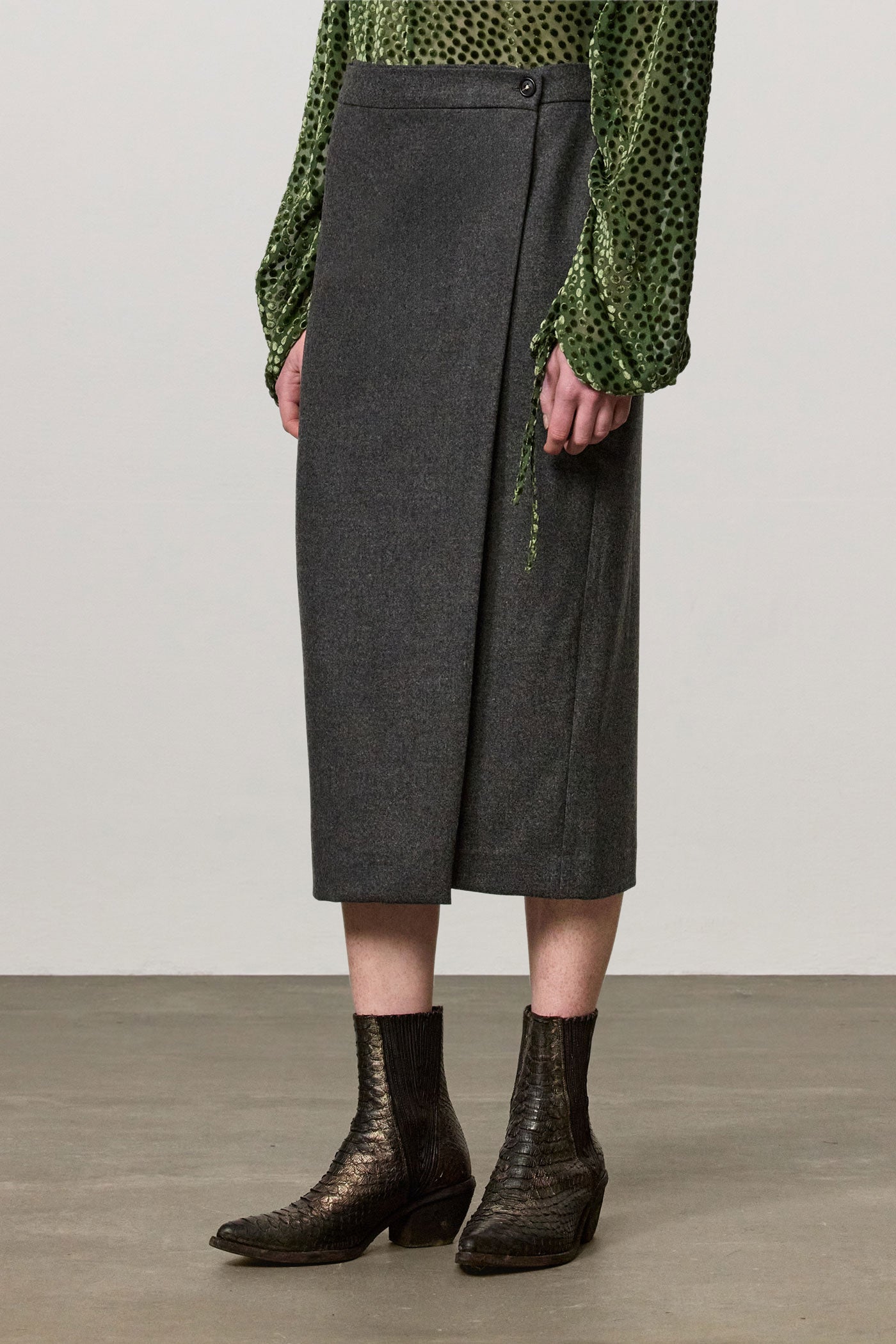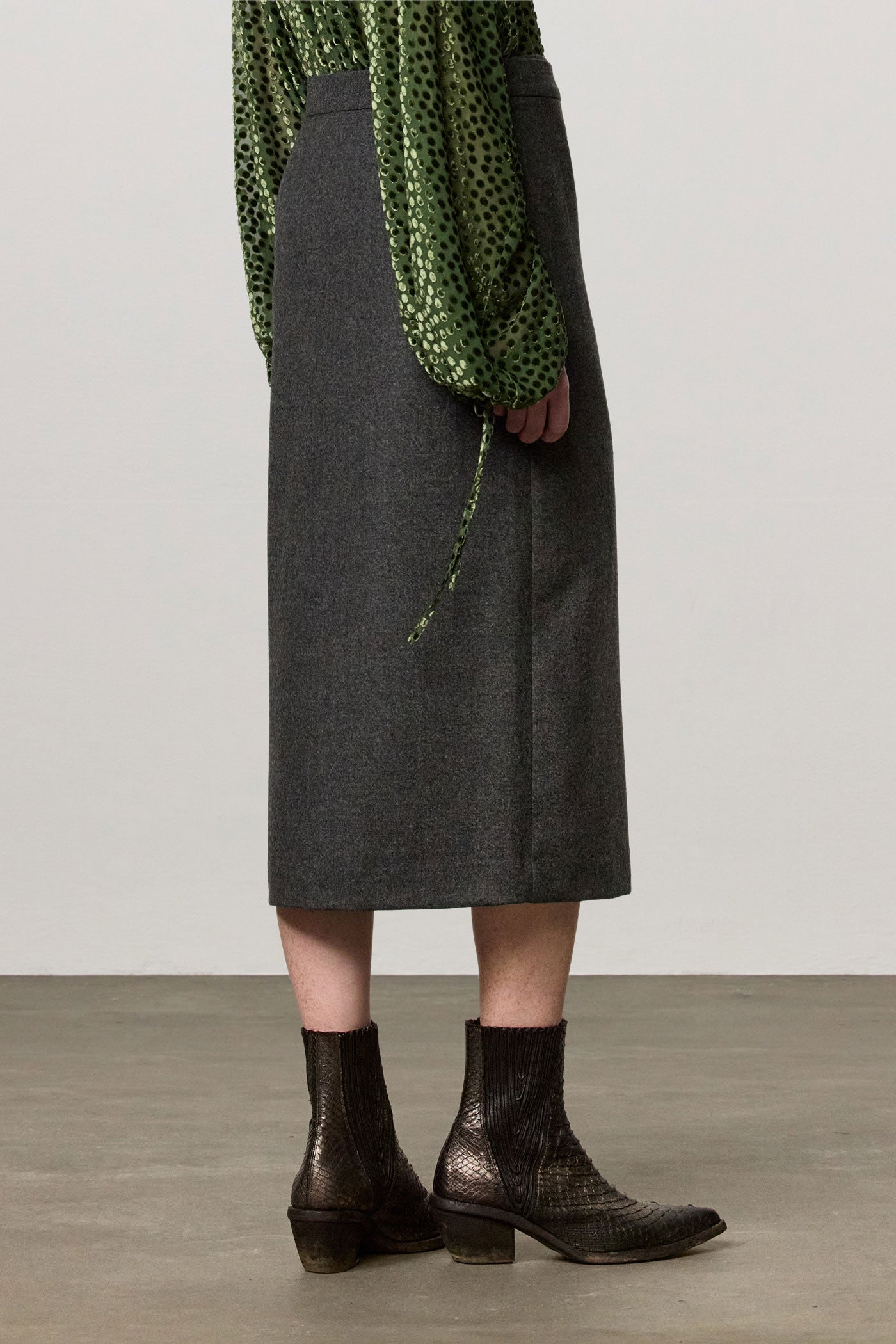 Midi pencil skirt with front slit and fastening. Crafted from melange virgin wool flannel. Made in Italy.